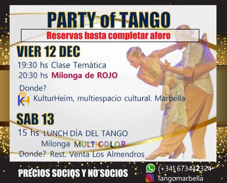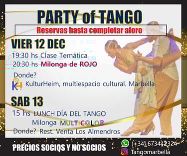 Viernes 12/12: 19.30hs clase temática, 20.30hs Milonga de Rojo en Marbella.