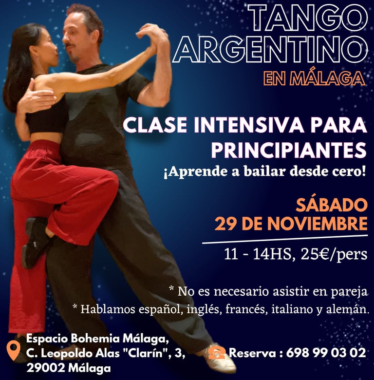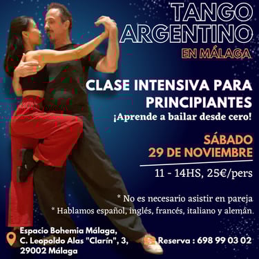 📍Estudio La Llave del Tango, calle Malpica 7, 29002 Málaga (https://maps.app.goo.gl/GW9kQp7iVbwXVvhk9).
